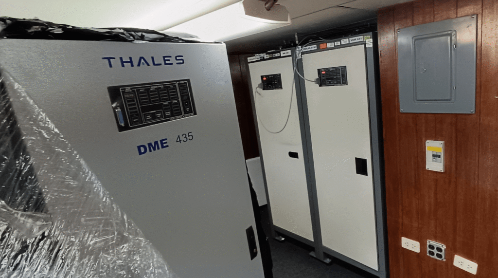 Le DME est un système d’aide radio normalisé par l’OACI, utilisé pour mesurer la distance d’un aéronef par rapport à une référence au sol. Il fonctionne grâce à un radar secondaire qui mesure le délai de propagation d’une impulsion radiofréquence émise par l’aéronef et renvoyée par une station au sol. Associé à un VOR, le DME détermine la direction et la distance grâce à la méthode rho-thêta. Ce système est également utilisé en configurations combinées VOR/DME ou VORTAC, et est capable de répondre simultanément à plusieurs aéronefs. La distance est calculée en mesurant l’intervalle entre l’émission du signal d’interrogation et la réponse, fournissant ainsi des informations précises et fiables pour la navigation aérienne.